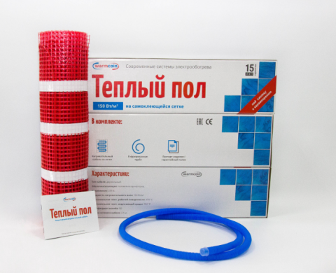 Нагревательный мат Warmcoin ST 15-2250 Готовый комплект теплого пола под плитку. Площадь 15 кв.м. Мощность 2250 Вт. - клеевая сетка